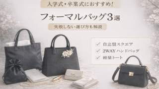 入学式・卒業式におすすめのフォーマルバッグを比較紹介。自立型スクエア、2WAYハンドバッグ、軽量トートの違いや選び方、失敗しないポイントを分かりやすく解説します。式典で浮かない上品バッグを厳選。